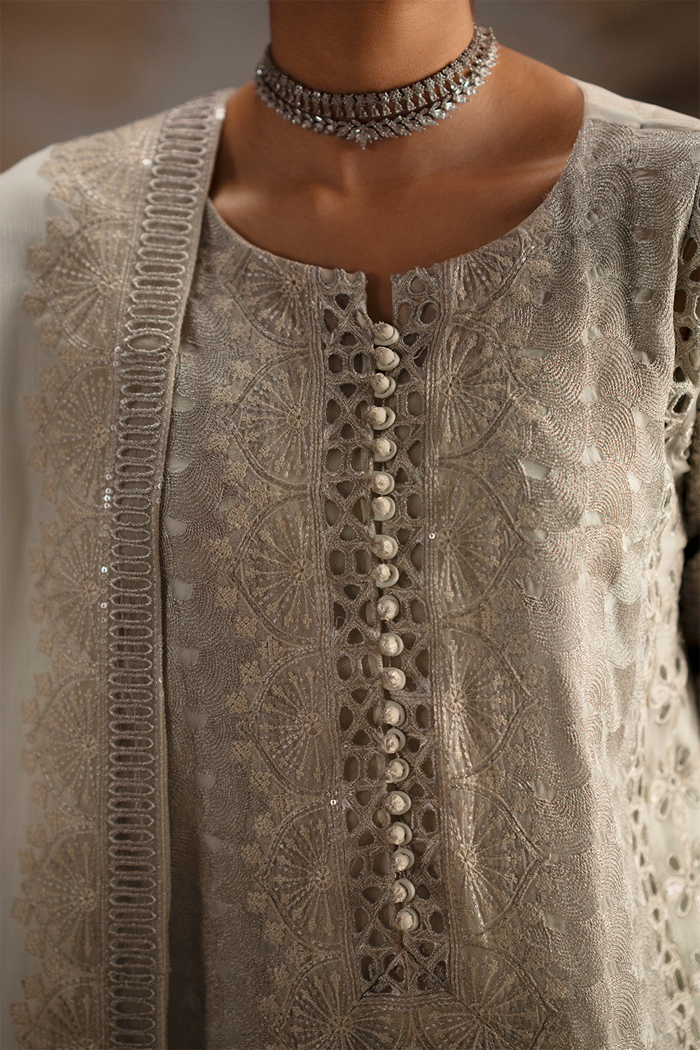 Embroidered Front, Neck (Organza) 1 Pc